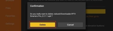7. If you click DONE above, you will return to the Downloader interface. Click Delete.