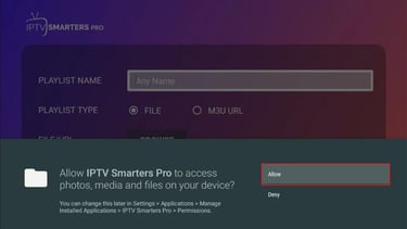 he app may request permission when you select the “Load Your Playlist” or “File/URL” option. Click Allow.